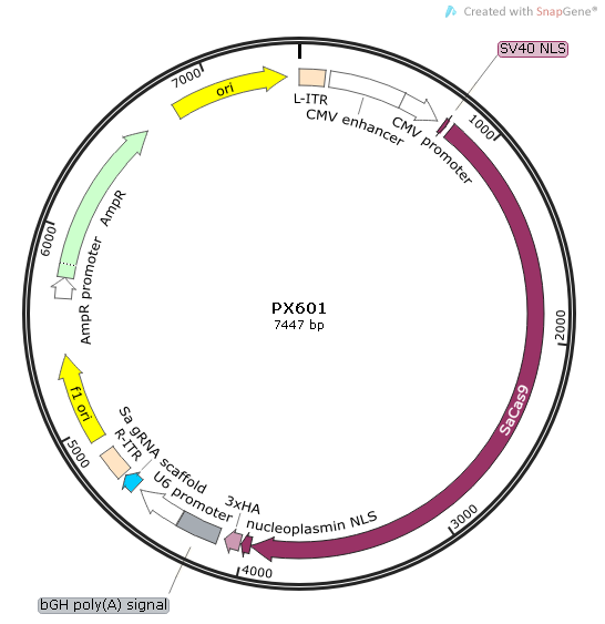 pX601-AAV-CMV::NLS-SaCas9-NLS-3xHA-bGHpA;U6::BsaI-sgRNA